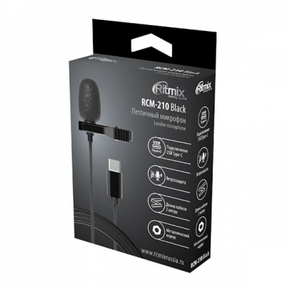 Технические характеристики Микрофон Ritmix RCM-210, петличный, защита от ветра, подключение к Type C