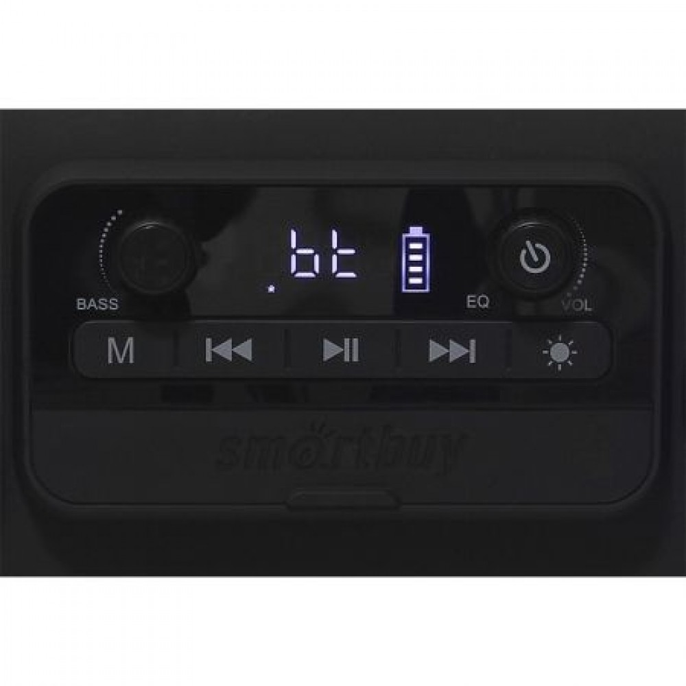 Портативная аудиосистема SmartBuy Valkyr обладает высокой мощностью и функциональностью. Система оснащена 4 динамиками (2 сабвуфера и 2 широкополосных) и имеет выходную мощность 22 Вт. В ней имеется полный набор функций: Bluetooth, AUX, FM-радио и MP3-плеер. Также предусмотрен вход для микрофона. На передней панели удобно расположены цифровой дисплей, регуляторы громкости и баса, кнопки для управления воспроизведением и подсветкой динамиков. Компактные размеры и удобная ручка позволят взять систему куда угодно, а встроенный аккумулятор обеспечит до 8 часов наслаждения вашей любимой музыкой без подзарядки.