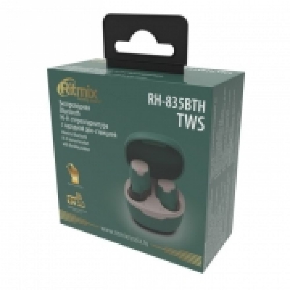 Гарнитура Bluetooth Ritmix RH-835BTH TWS, вставная, зарядный кейс, сенсорн. управление, зелёная