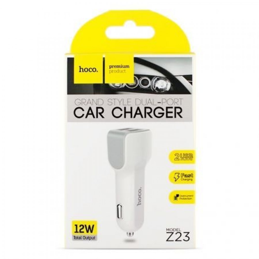 Зарядное автомобильное устройство Hoco Z23 2.4A 2xUSB, белое