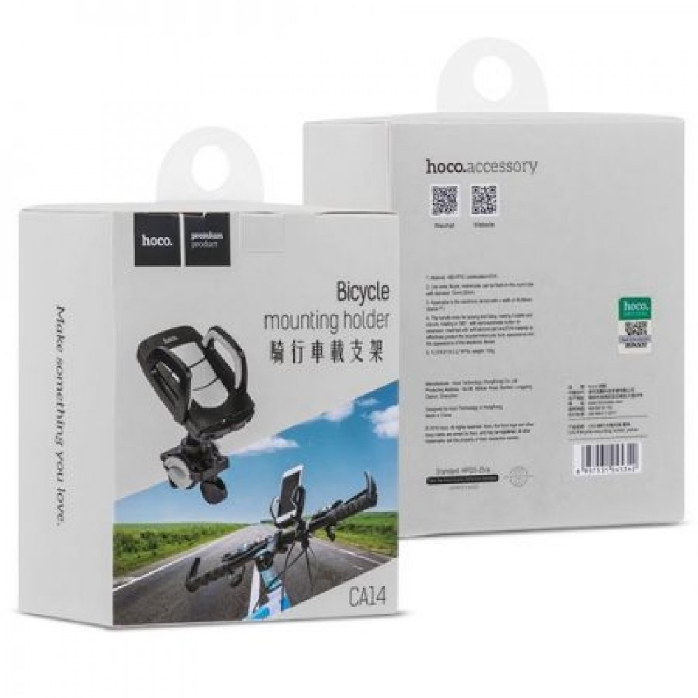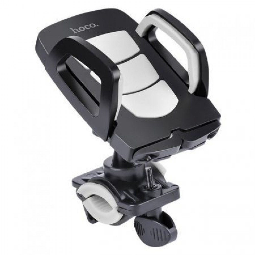 Hoco CA14 - универсальный велосипедный держатель для мобильных устройств с диагональю экрана от 3.5 до 7". Специальный зажим с изменяемой шириной хвата и силиконовыми накладками позволяет устанавливать держатель на велосипедный руль или штангу, мотоцикл или детскую коляску. Телефон фиксируется в держателе с помощью раздвижных зажимов, а для дополнительной фиксации во время езды предусмотрены складные нижие упоры. Наклонно-поворотный механизм позволяет закрепить смартфон под любым углом.