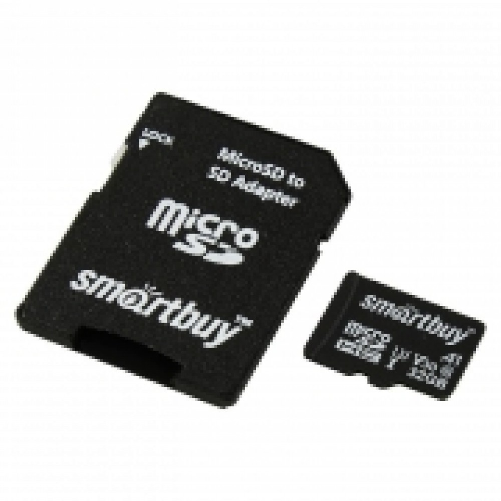 Карта памяти Micro SDHC 32Gb Smartbuy Class 10 U3 V30, 90/55 Мб/с + адаптер SD (SB32GBSDU1A-AD)