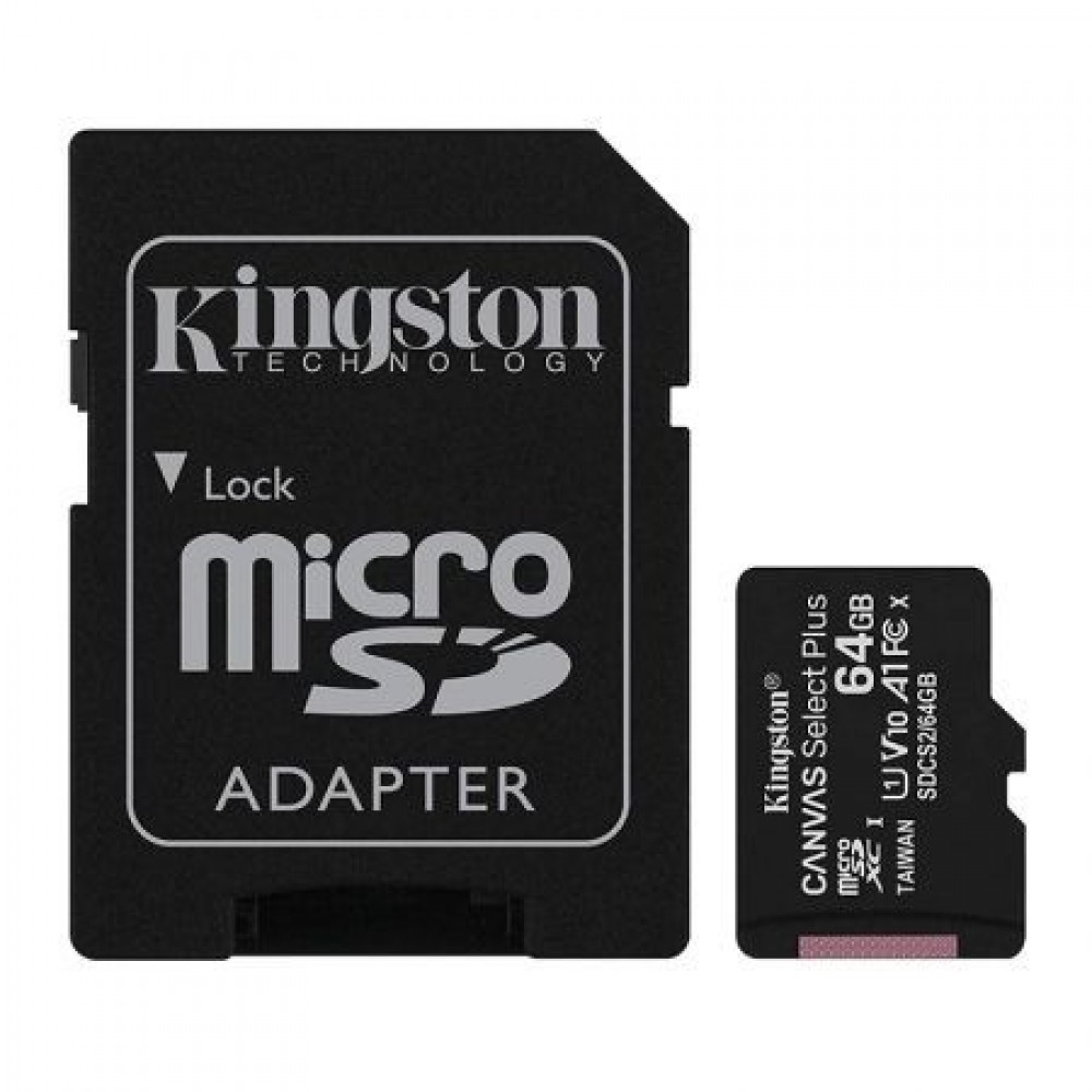 Карта памяти Micro SDXC 64Gb Kingston Class 10 Canvas Select + UHS-I U1 A1, 100 Мб/с + адаптер SD