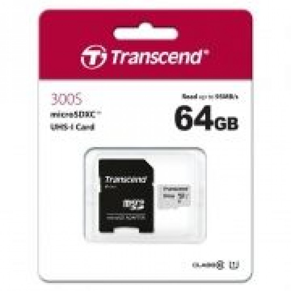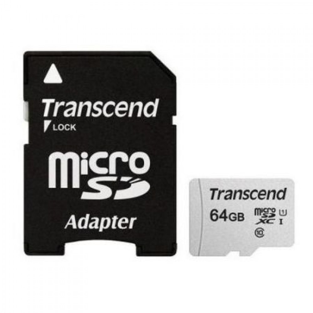 Карта памяти Micro SDXC 64Gb Transcend 300S Class 10 UHS-I U1+ адаптер SD (TS64GUSD300S-A)
