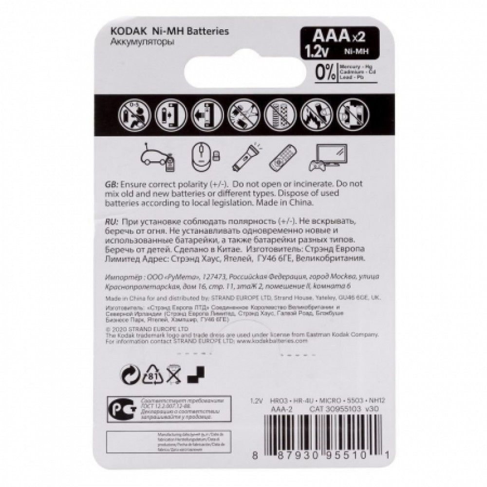 • Аккумулятор AAA Kodak HR03-2BL 850мА/ч Pre-Charged Ni-Mh, 2шт, блистер (K3AHR-2)