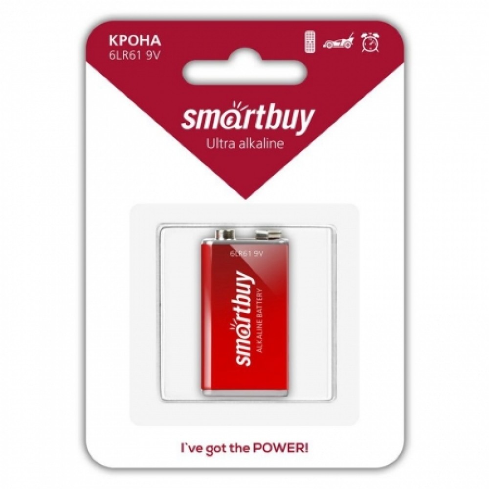 Батарейка 9V Smartbuy 6LR61/1B, щелочная, блистер (SBBA-9V01B)