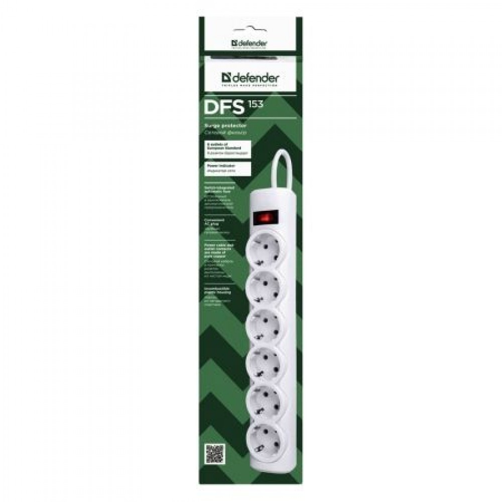 Сетевой фильтр Defender DFS 153, 3 м, белый, 6 розеток (99490)