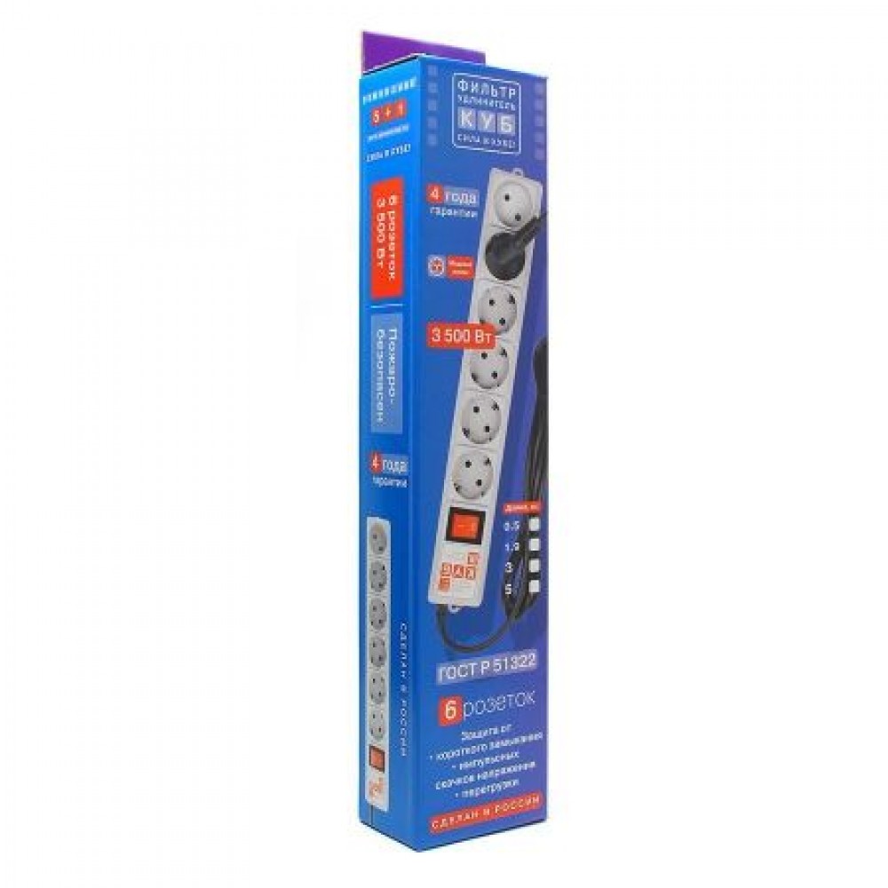 • Сетевой фильтр Power Cube 5+1 3.5 кВт 16A, белый, 0.5 м, 6 розеток (SPG(5+1)-16B-0,5М)