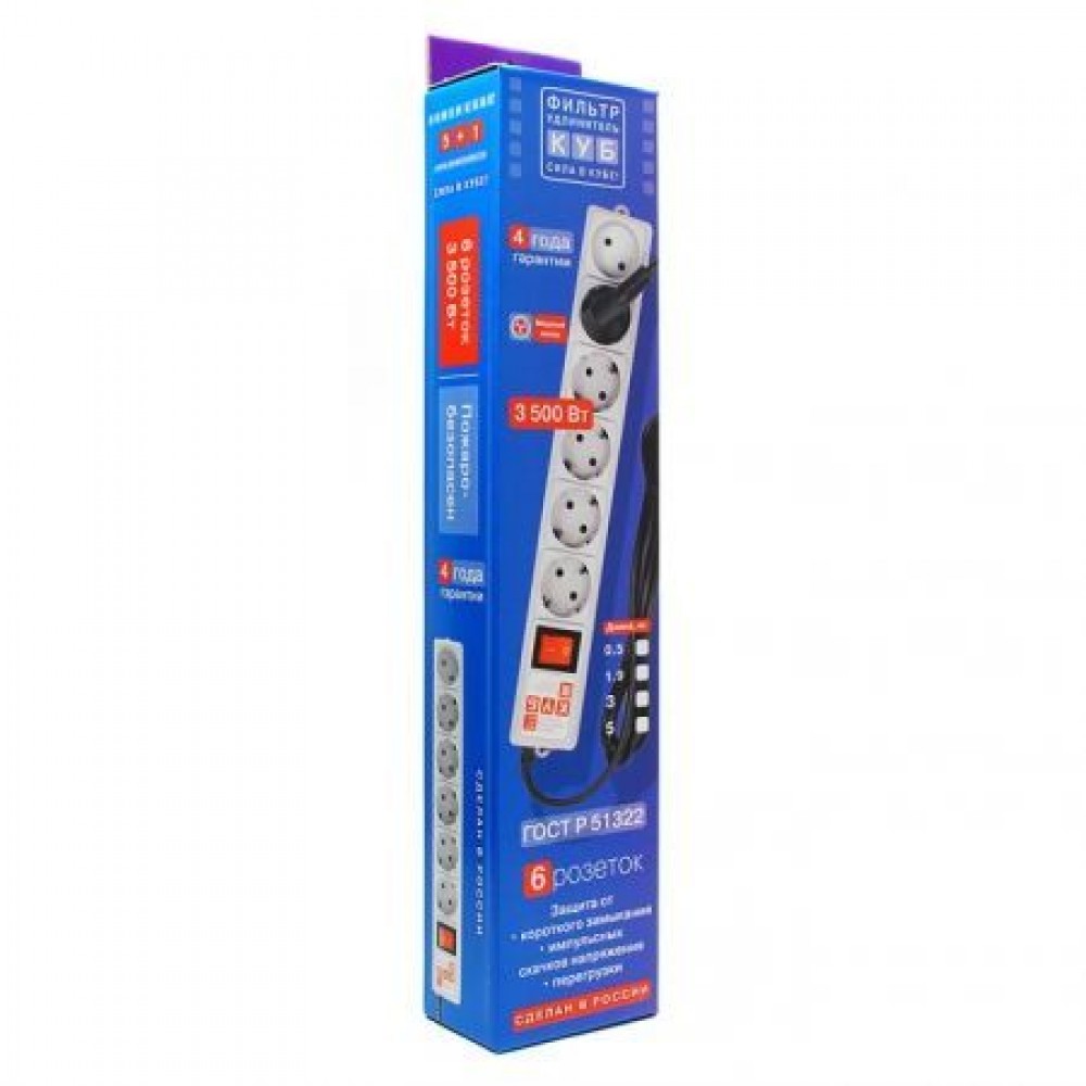 Сетевой фильтр Power Cube 5+1 3.5 кВт 16A, белый, 5 м, 6 розеток (SPG(5+1)-16B-5М)