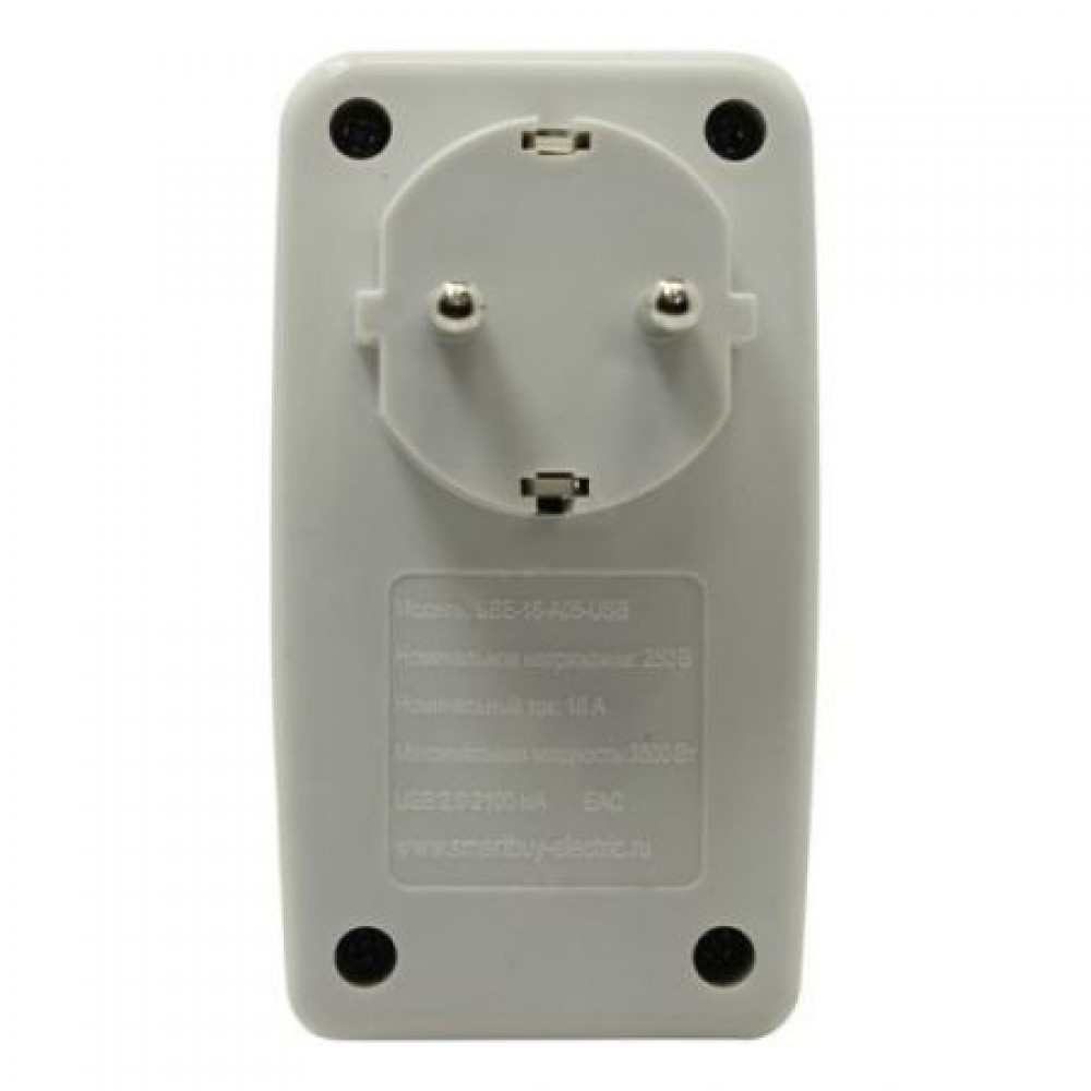 Технические характеристики Сетевой фильтр Smartbuy ONE 3.5 кВт 16A, 1 розетка, 2xUSB 2.1A, белый (SBE-16-A05-USB)