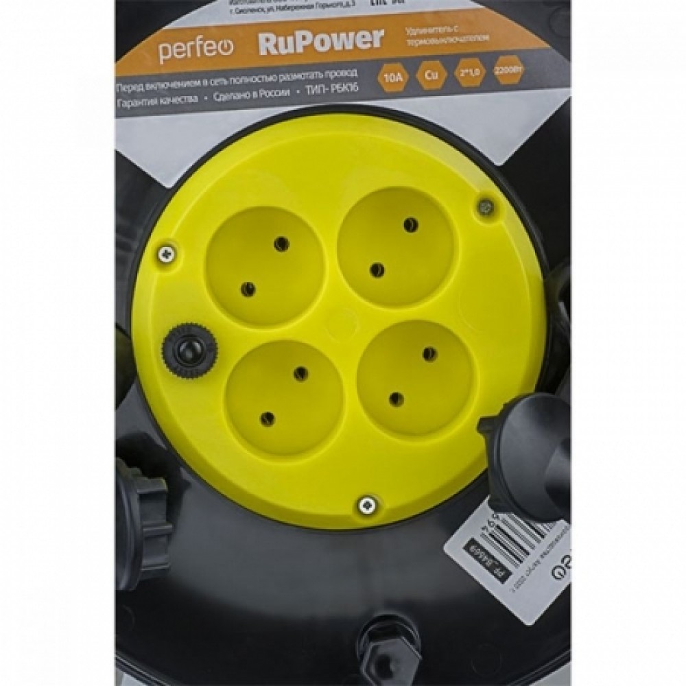 Удлинитель сетевой на катушке Perfeo РБК16, 220В 10A, 20 м, 4 роз., без заземл., термозащ (PF_B4669)