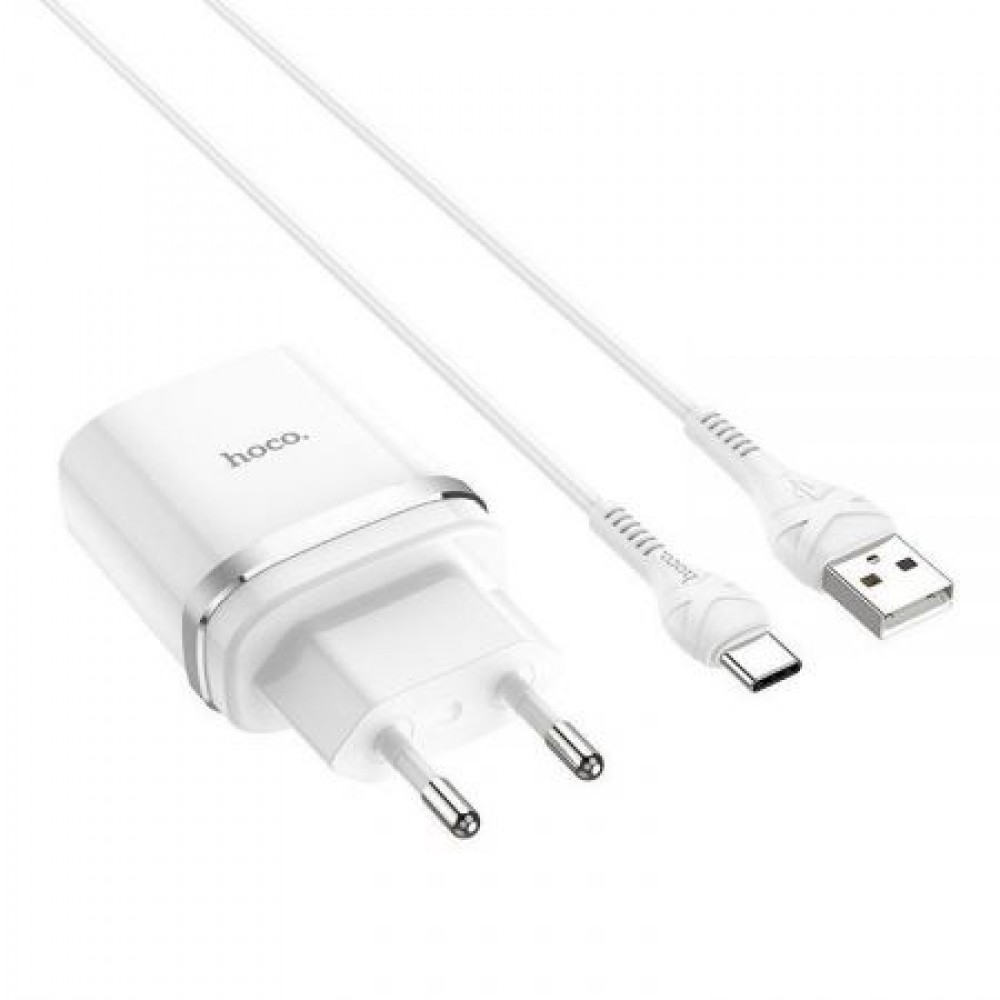 Зарядное устройство Hoco C12Q QC3.0 3А USB + кабель Type C, белое
