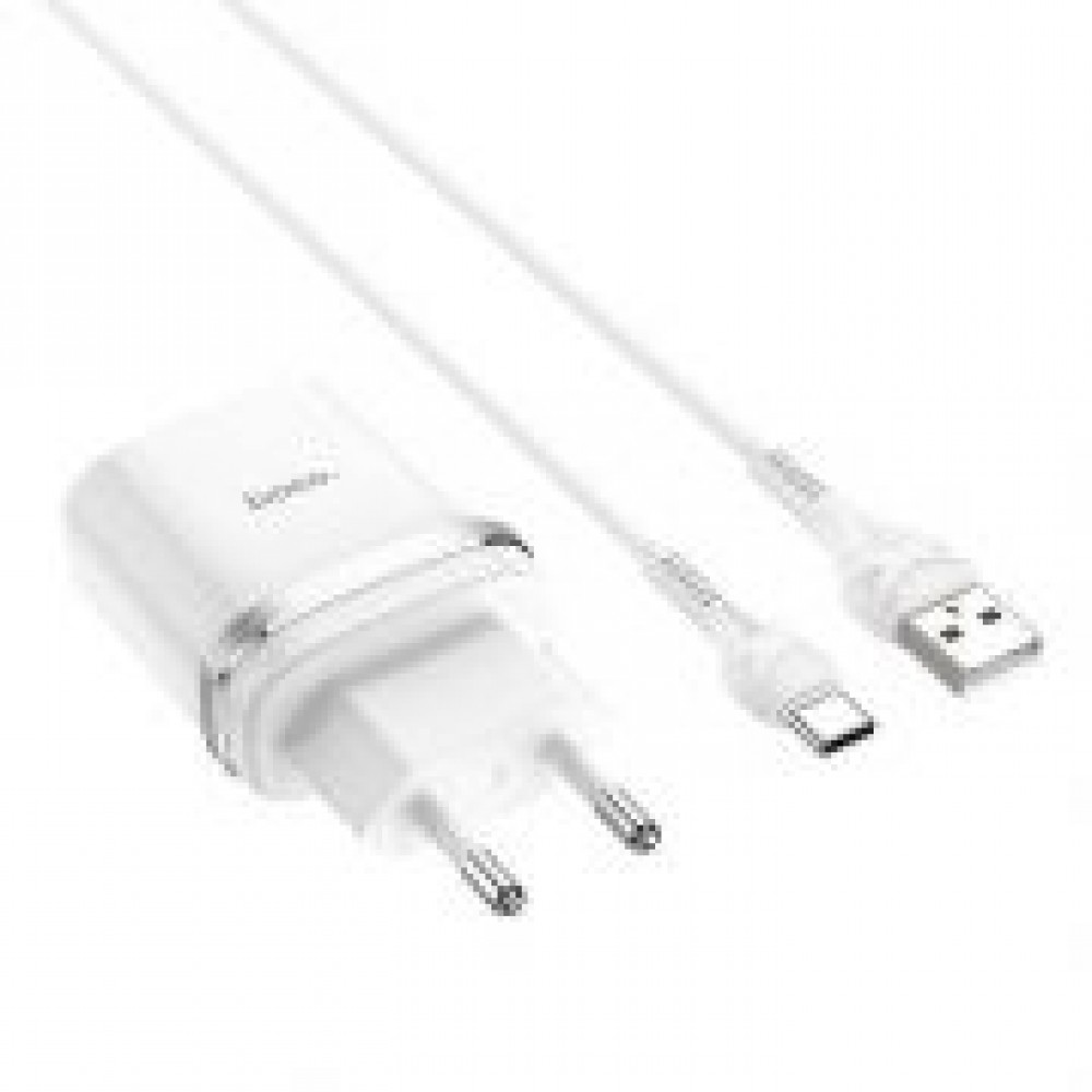 Зарядное устройство Hoco C12Q QC3.0 3А USB + кабель Type C, белое 0 12.90 byn