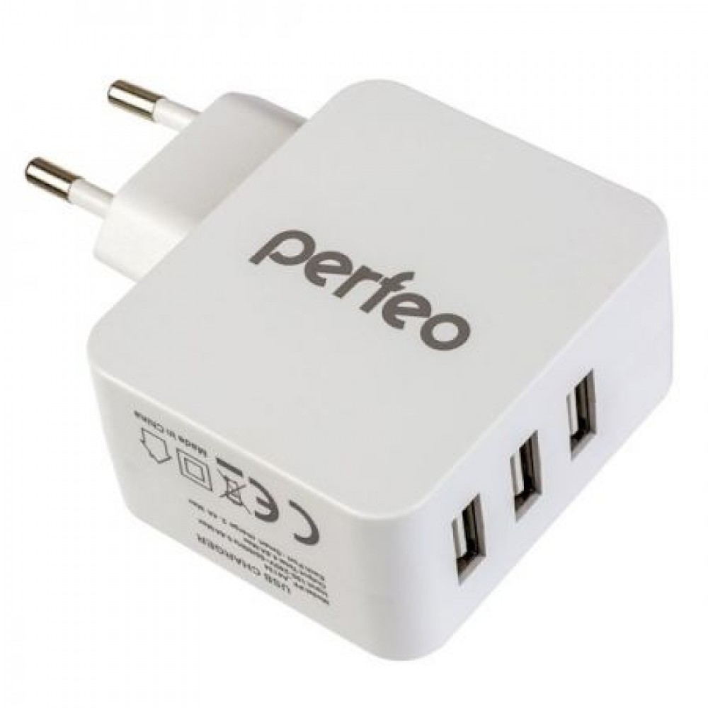 Зарядное устройство Perfeo CUBE 3, 4.8A, 3xUSB, белое (PF_A4134)