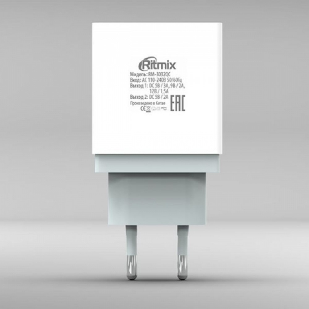 Зарядное устройство Ritmix RM-3032QC 3А+2A 5В, 2xUSB, белое