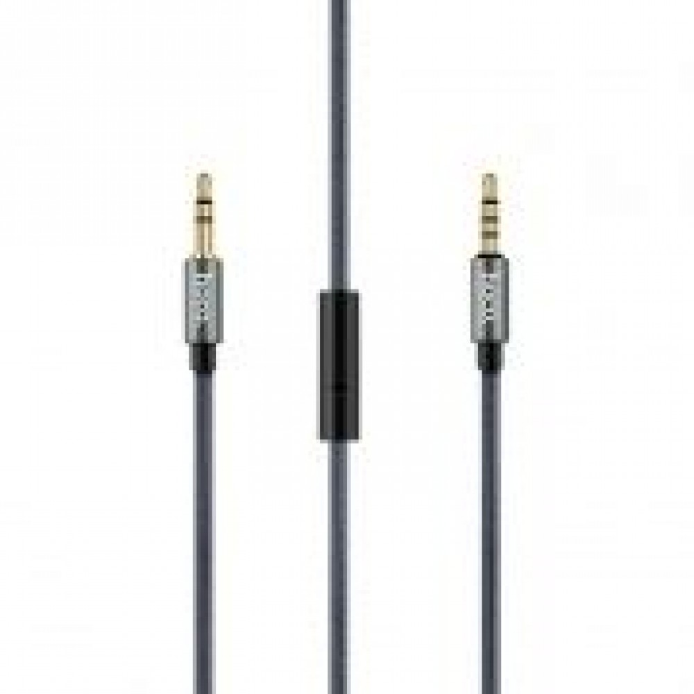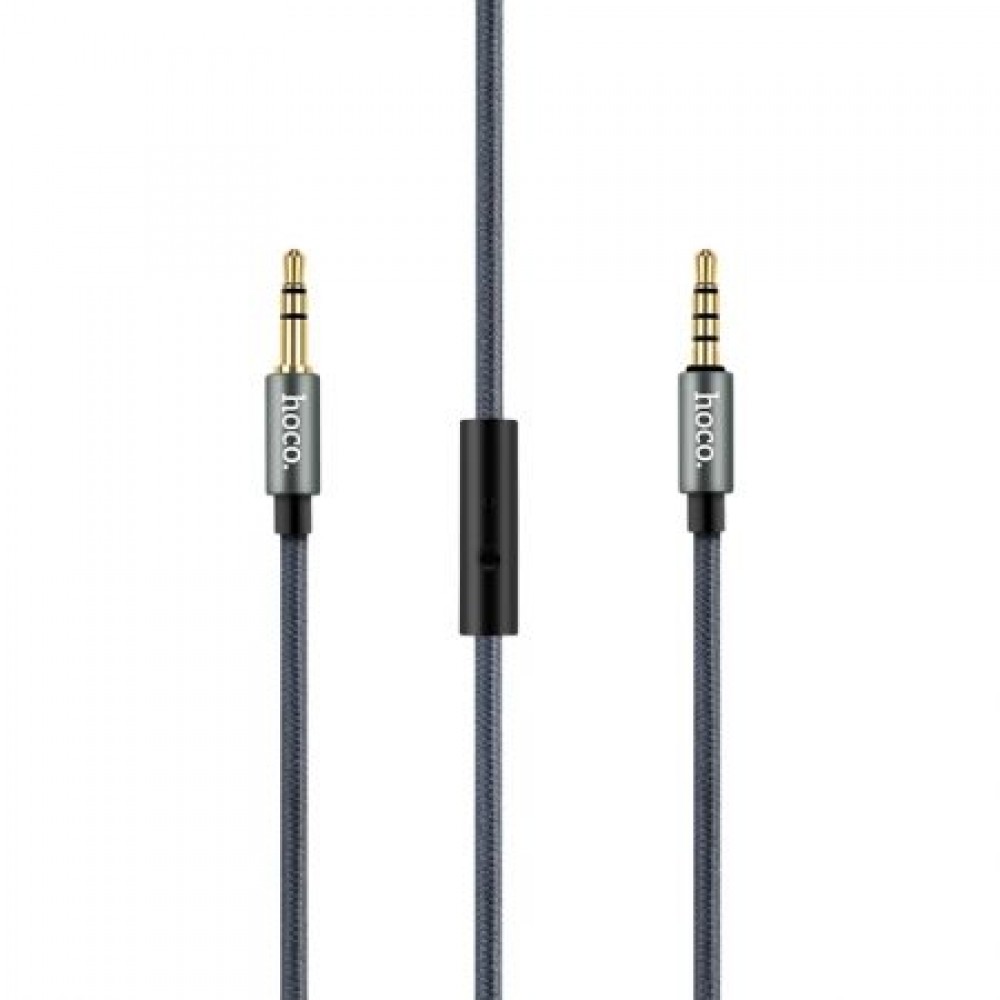 Кабель аудио 3.5 4-pin plug -> 3.5 3-pin plug, 1 м, микрофон, пульт, серый, Hoco UPA04 Tarnish