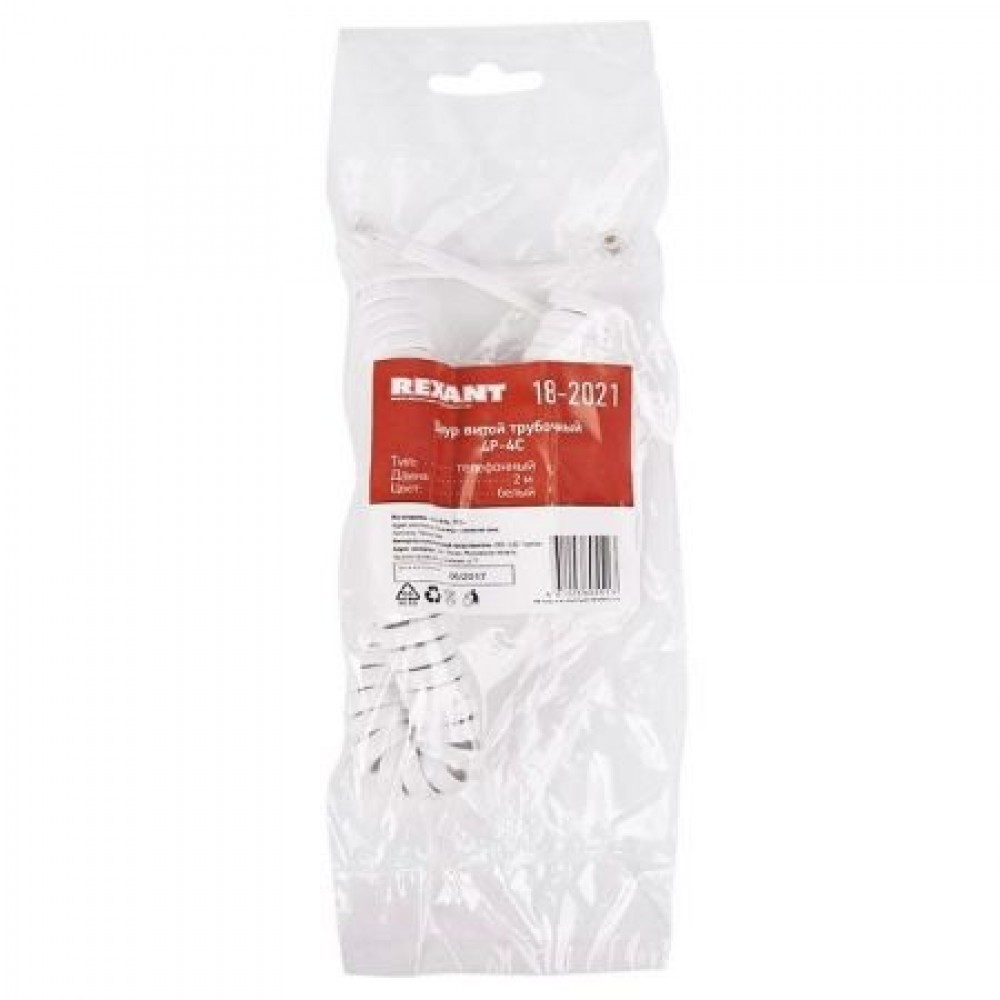 Кабель телефонный витой 4p4c RJ10, 2 м, белый, Rexant (18-2021)
