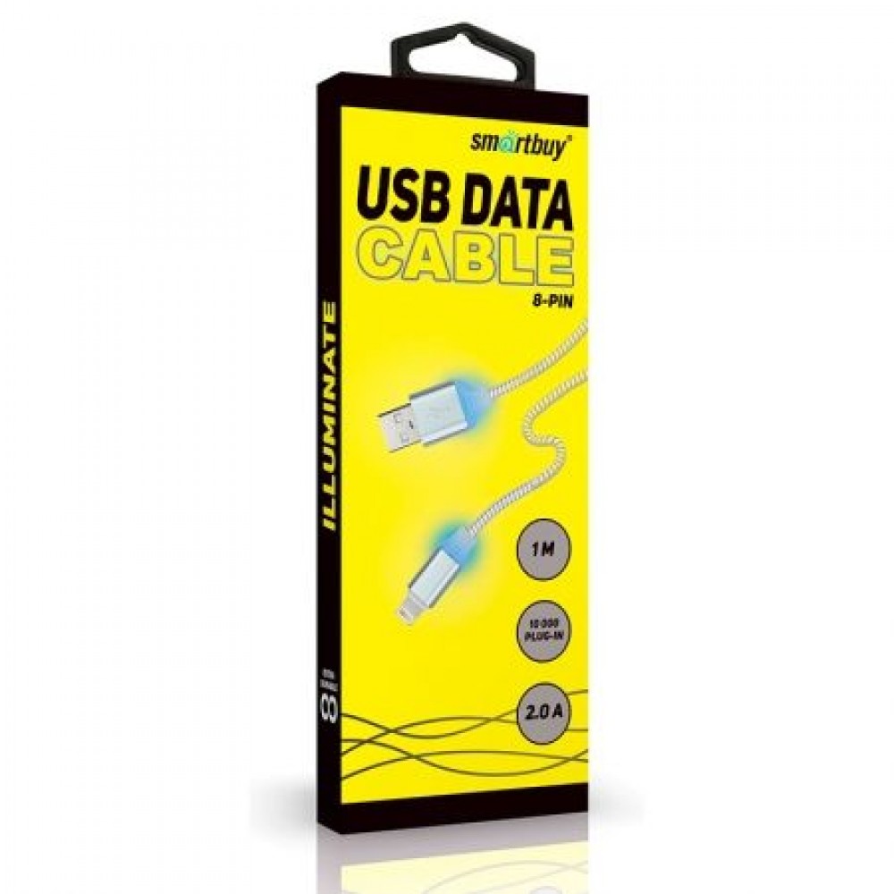Кабель USB 2.0 Am=>Apple 8 pin Lightning, 1 м, с индикацией, белый, Smartbuy (iK-512ssbox white)