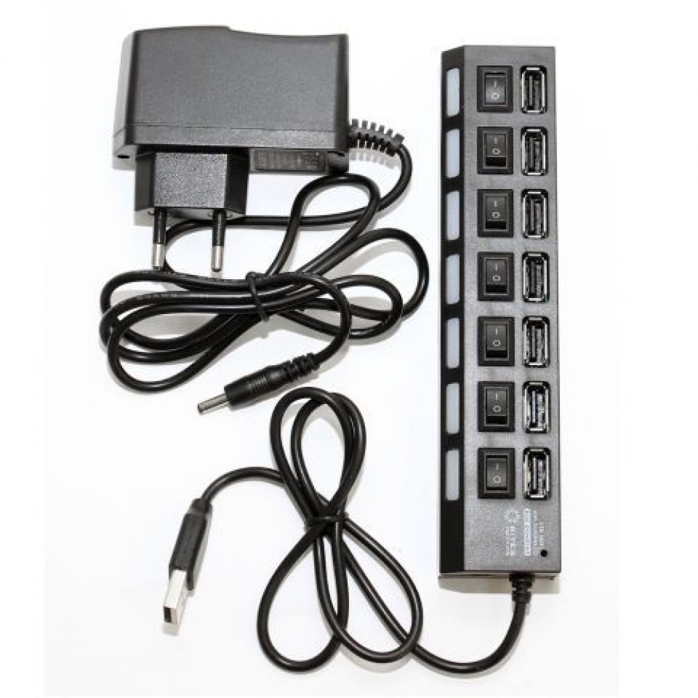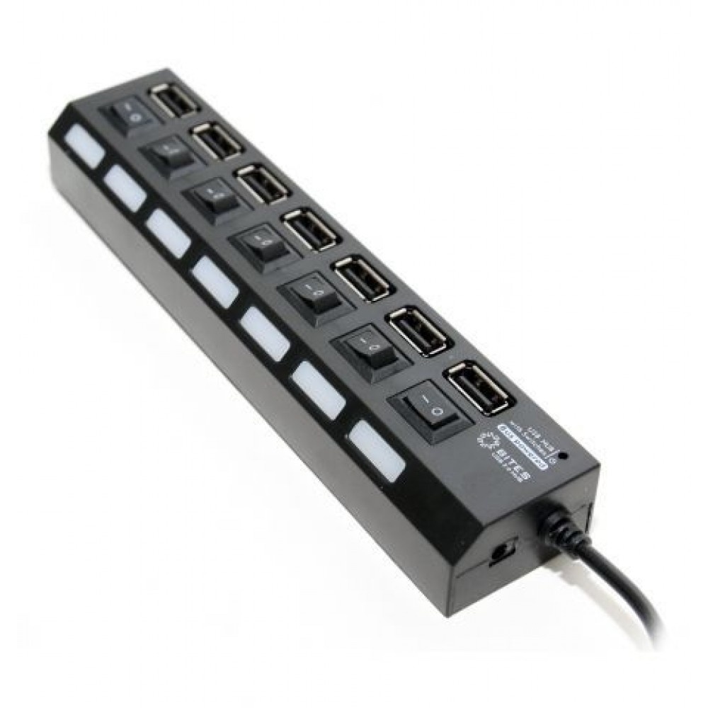 HUB 7-port 5bites HB27-203PBK Black USB 2.0 с блоком питания 2A, индивидуальные выключатели