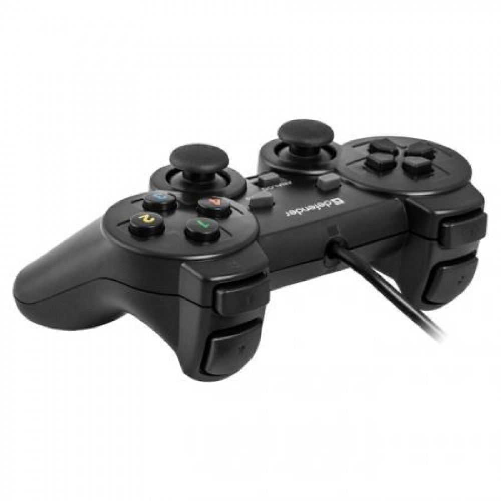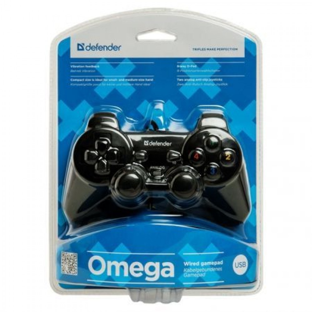 Defender Omega - проводной геймпад для компьютера. При доступной цене он имеет все необходимые функциональные клавиши и отлично подойдет начинающим геймерам. Модель оснащена 12 кнопками, 8-позиционным переключателем видов и двумя аналоговыми джойстиками, позволяющими играть в дополнительные игры, например, в футбольные симуляторы. Два встроенных вибромотора делают аварии и столкновения более реалистичными (игра должна поддерживать функцию вибрации игрового контроллера). Манипулятор подключается к USB-порту и поддерживает ОС Windows 2000/ ХР/ Vista/ 7 / 8 / 10.