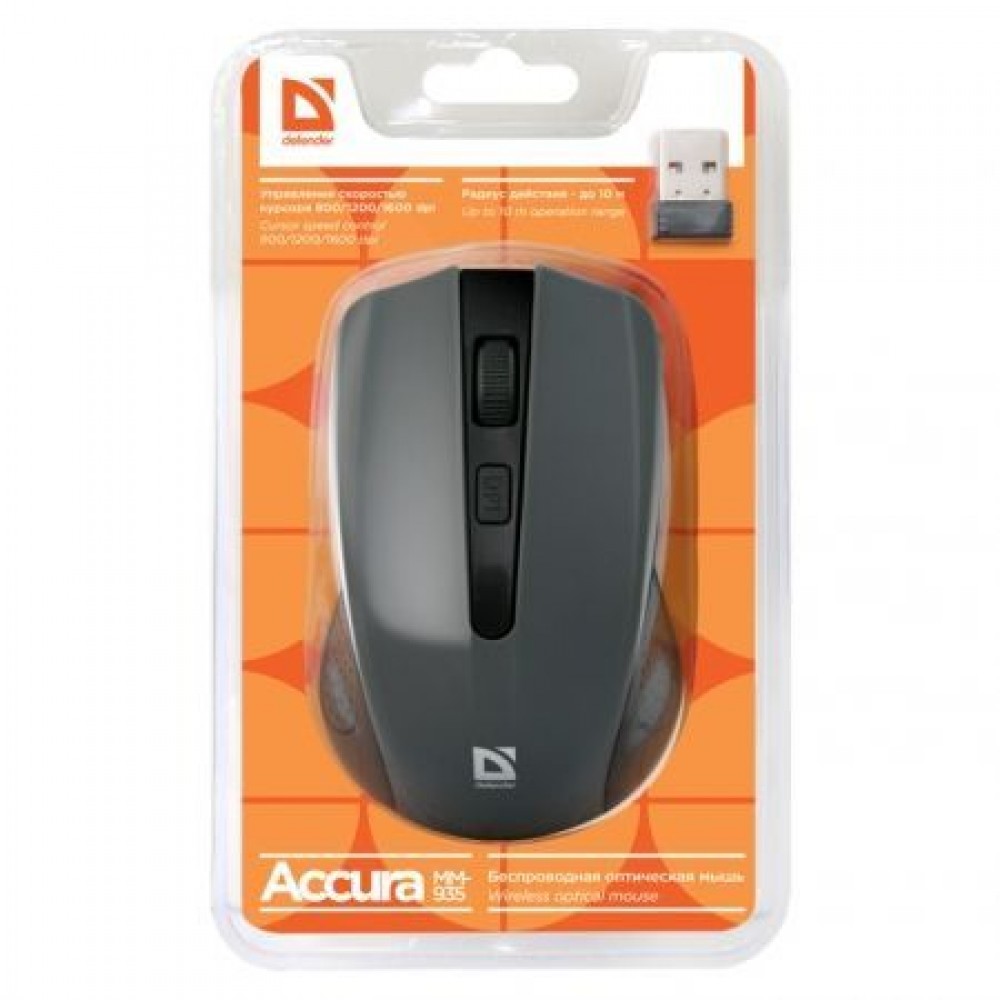 Мышь беспроводная Defender MM-935 Accura, серая (52936)