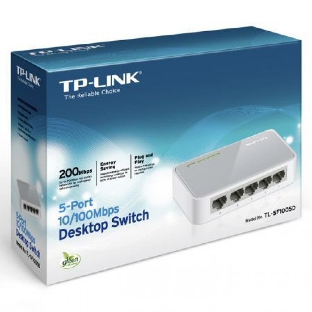 Компактный 5-портовый коммутатор Fast Ethernet TP-Link SF1005 предназначен для использования дома или в небольшом офисе, а также в рабочих группах.