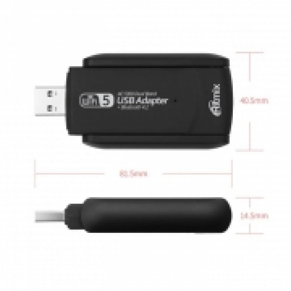 USB-адаптер 802.11n/ac + Bluetooth 4.2, 2.4/5ГГц, 867 Мбит/c, внешняя антенна 2 дБ, Ritmix RWA-650