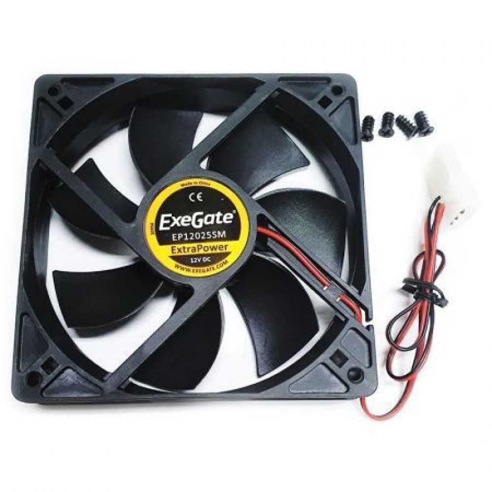 Вентилятор 120 х 120 х 25 мм, Exegate EP12025SM. Вентилятор питается от 12В и подключается к разъему Molex.