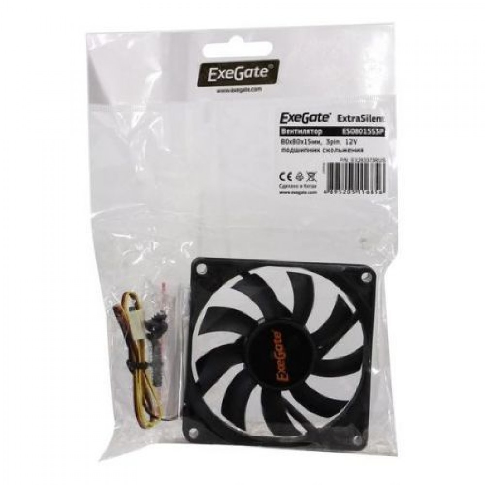 Вентилятор 80 x 80 x 15, 3 pin, 12V, 1600 об/мин, втулка, кабель 30 см, Exegate (ES08015S3P)