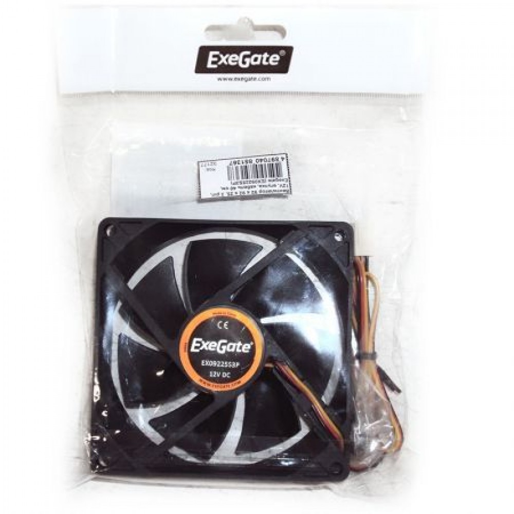 Вентилятор 92 x 92 x 25, 3 pin, 12V, втулка, кабель 40 см, Exegate (EX09225S3P)