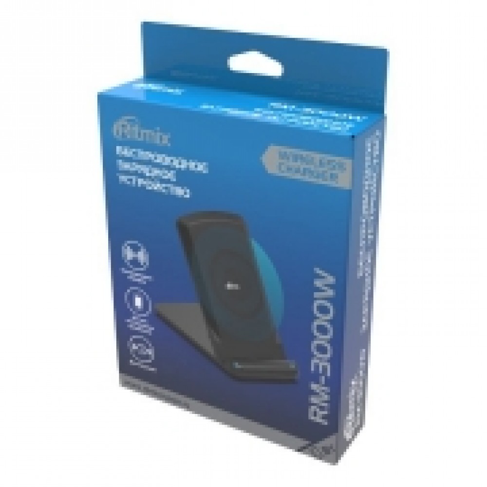 Ritmix RM-3000W - беспроводное зарядное устройство со складной подставкой для зарядки смартфонов, наушников и других устройств с питанием через беспроводную зарядку. Устройство обладает максимальной мощностью 10 Вт. Подключается к адаптеру питания с разъемом USB A.