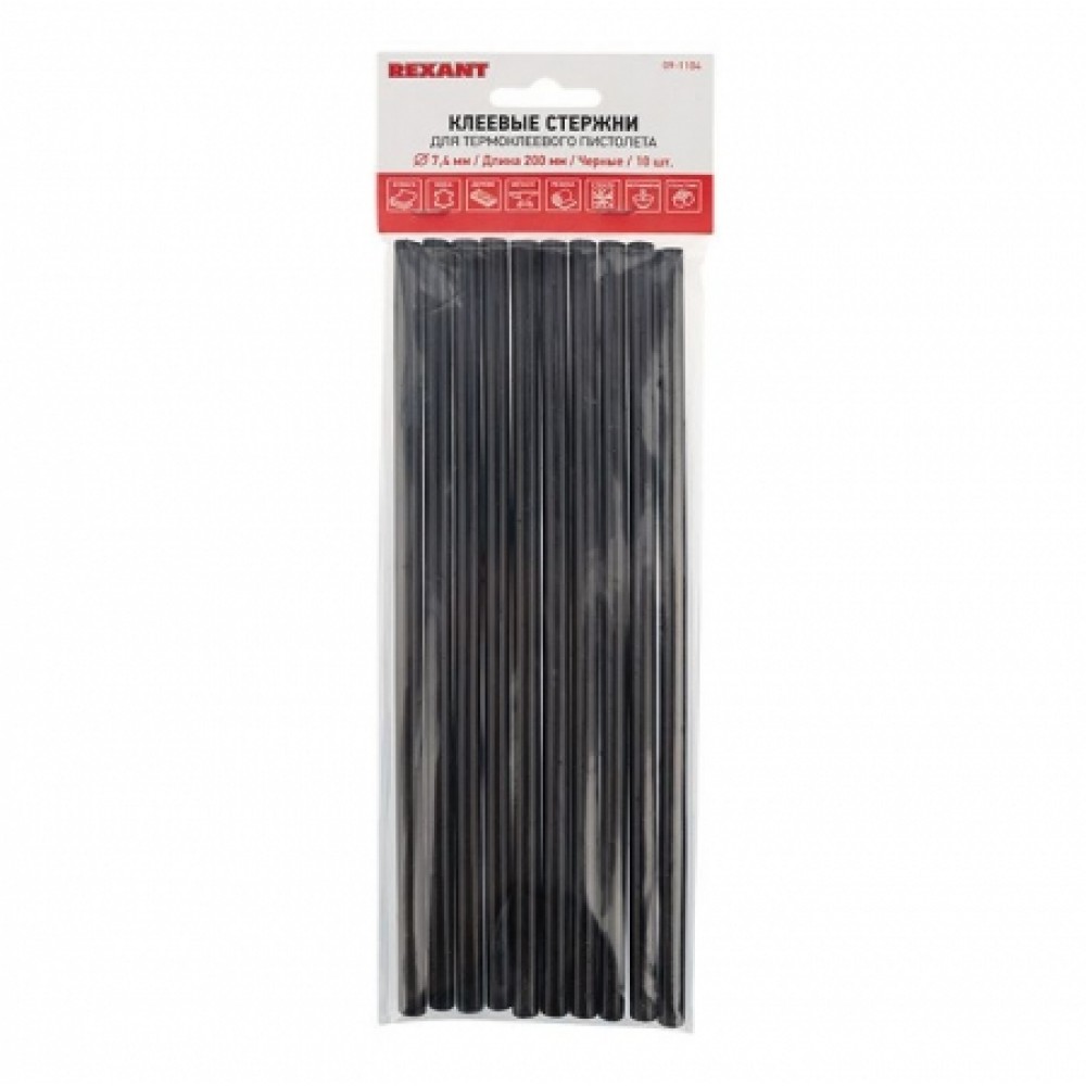 Клеевые стержни 7.4/200мм, черные, 10 шт, Rexant (09-1104)