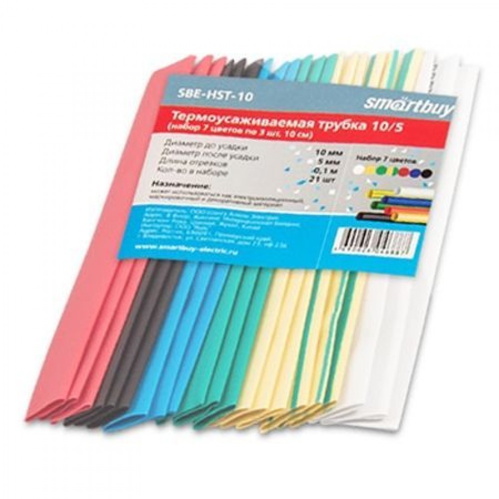 Набор термоусадочных трубок 10/5, 7 цветов по 3 шт, 10 см, Smartbuy (SBE-HST-10)