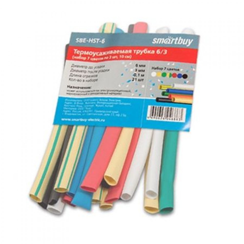 Набор термоусадочных трубок 6/3, 7 цветов по 3 шт, 10 см, Smartbuy (SBE-HST-6)
