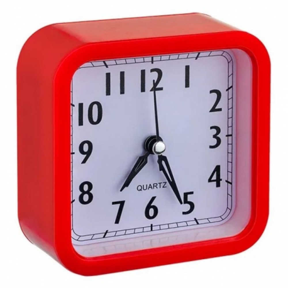 Часы будильник Perfeo Quartz PF-TC-019, квадратные, 10x10 см, красные (PF_C3168)