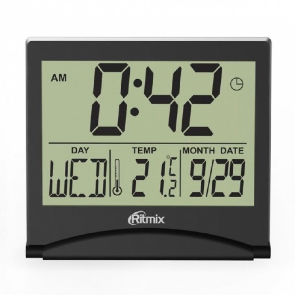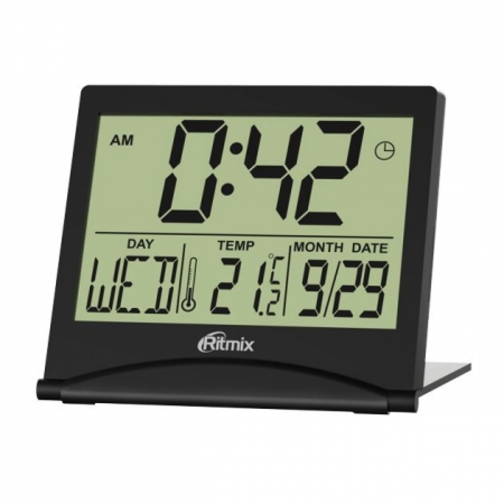 Часы будильник Ritmix CAT-042, температура, дата, складной корпус, черные