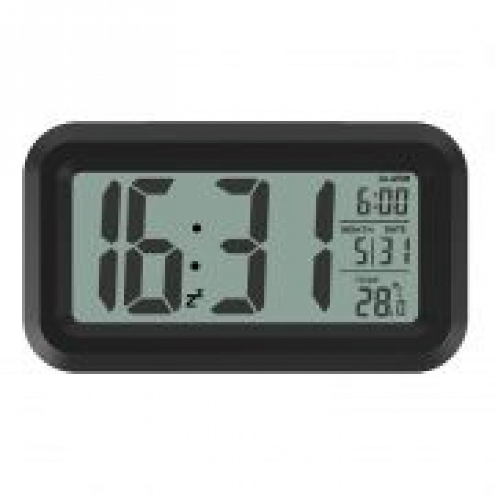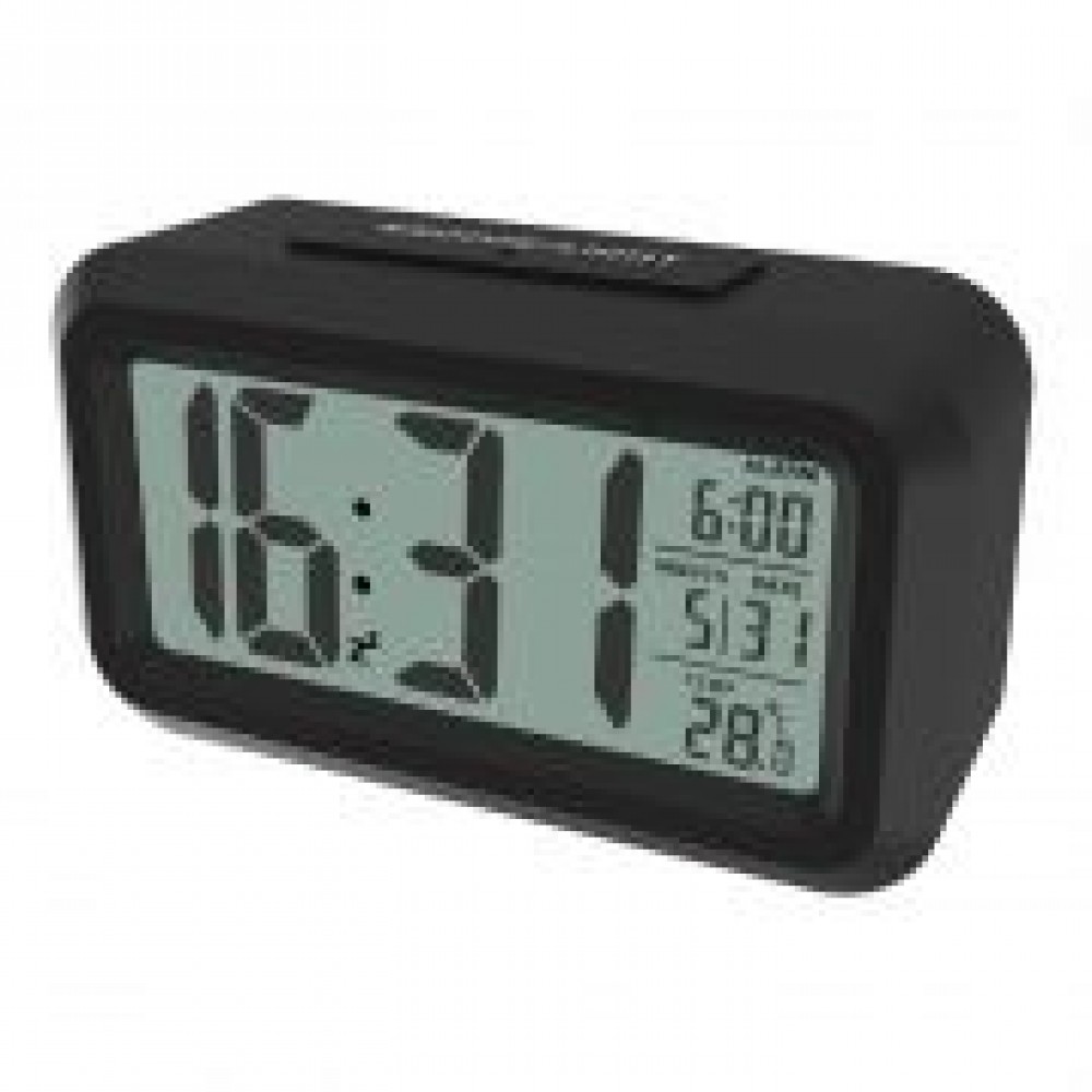 Модель выполнена в лаконичном дизайне и оснащена ЖК-дисплеем с крупными чёткими цифрами высотой 4 см. Комфортная подсветка экрана имеет два режима работы. Либо кратковременно включается (на 5 секунд) легким нажатием клавиши на верхней грани корпуса (это удобно ночью, если Вы поставили будильник рядом с кроватью, но любите спать в полной темноте, без каких-либо светящихся во время сна приборов). Либо уютная приглушенная подсветка может работать непрерывно, самостоятельно включаясь в темноте и выключаясь на свету по датчику освещенности. Режим включения подсветки легко устанавливается одним движением регулятора на обороте часов.