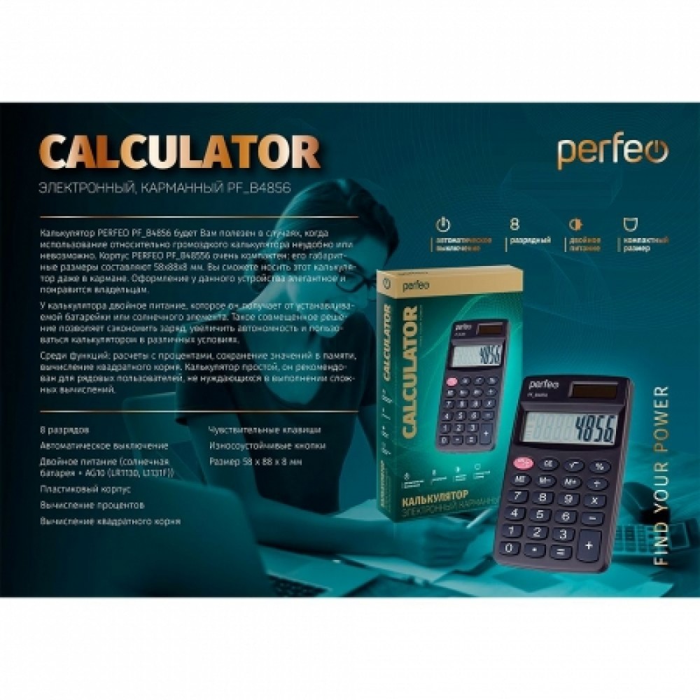 Калькулятор карманный Perfeo PF_B4856, 8-разрядный, черный