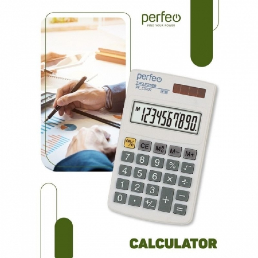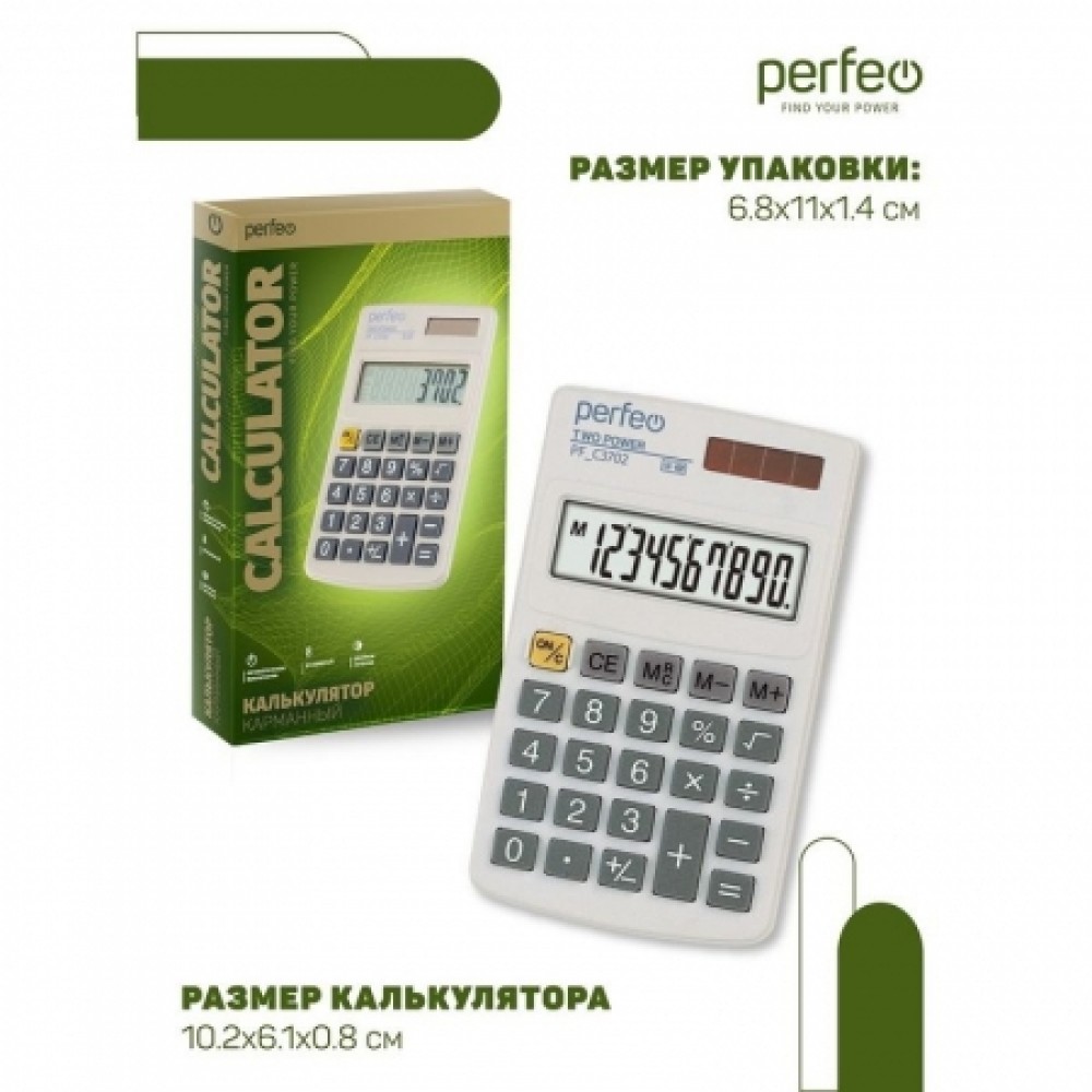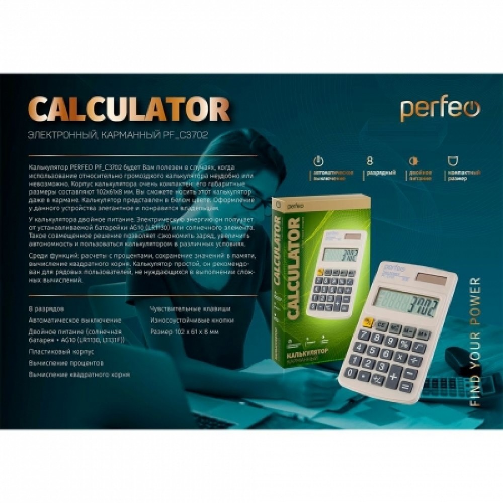 Калькулятор карманный Perfeo PF_C3702, 8-разрядный, белый