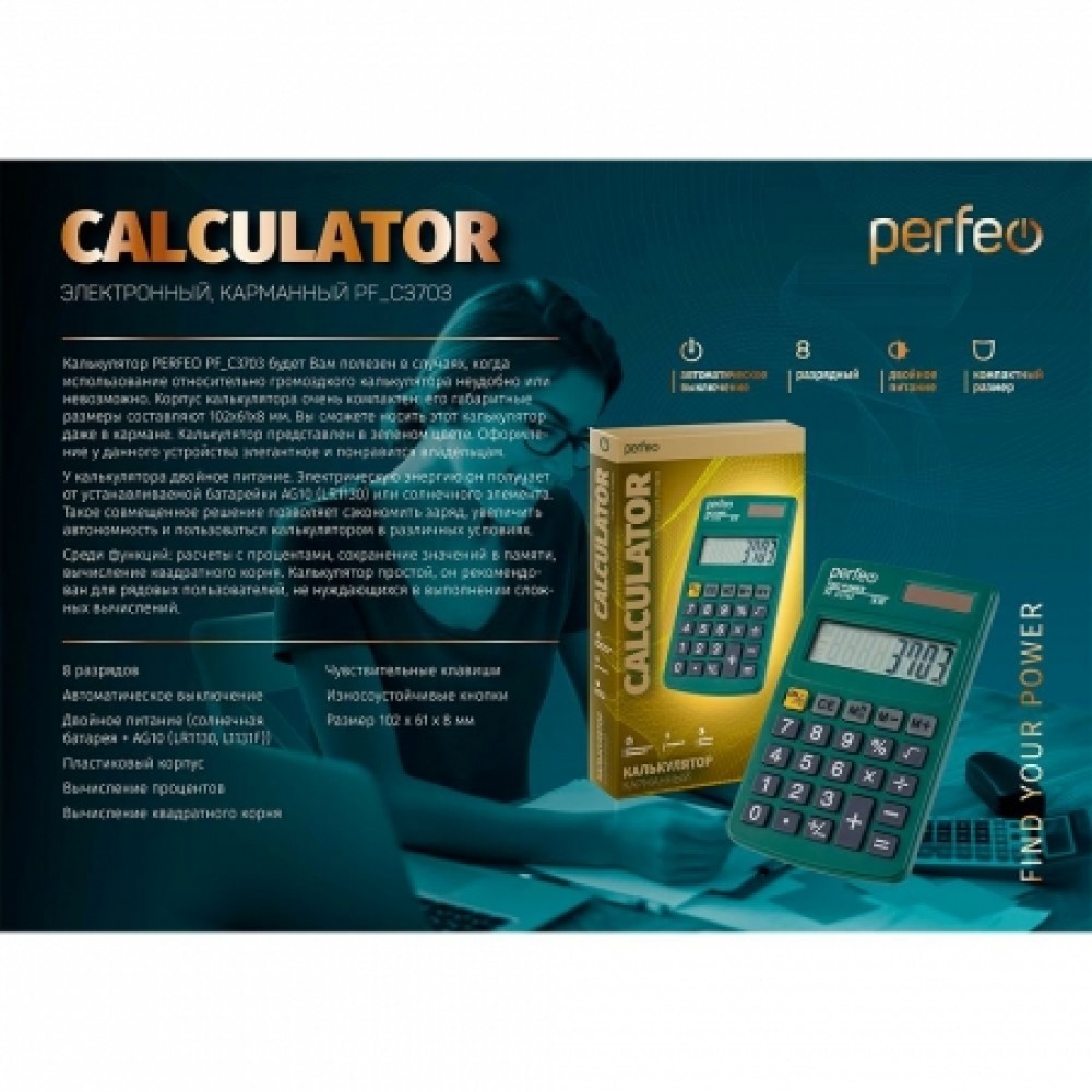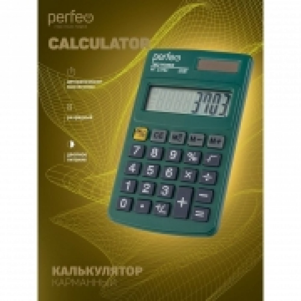 Калькулятор карманный Perfeo PF_C3703, 8-разрядный, зеленый