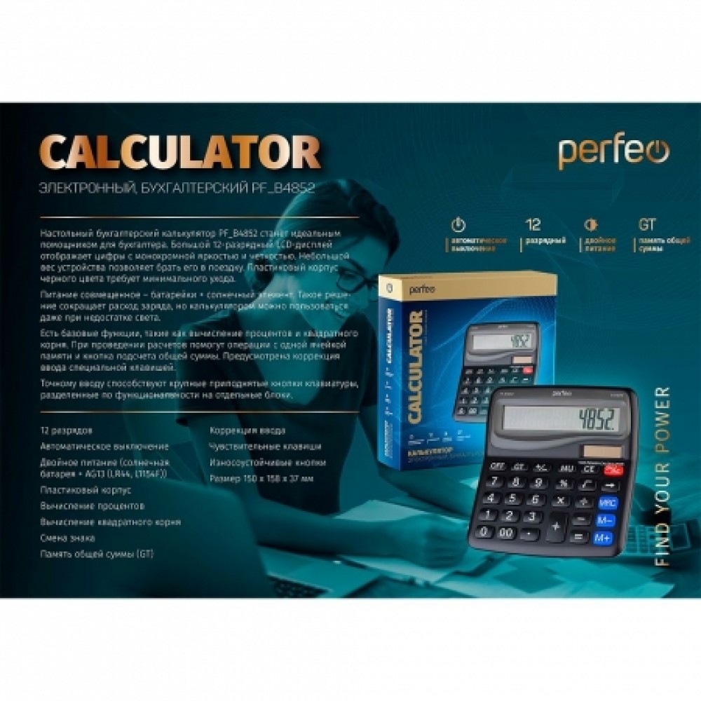 Калькулятор настольный Perfeo PF_B4852, 12-разрядный, бухгалтерский, черный