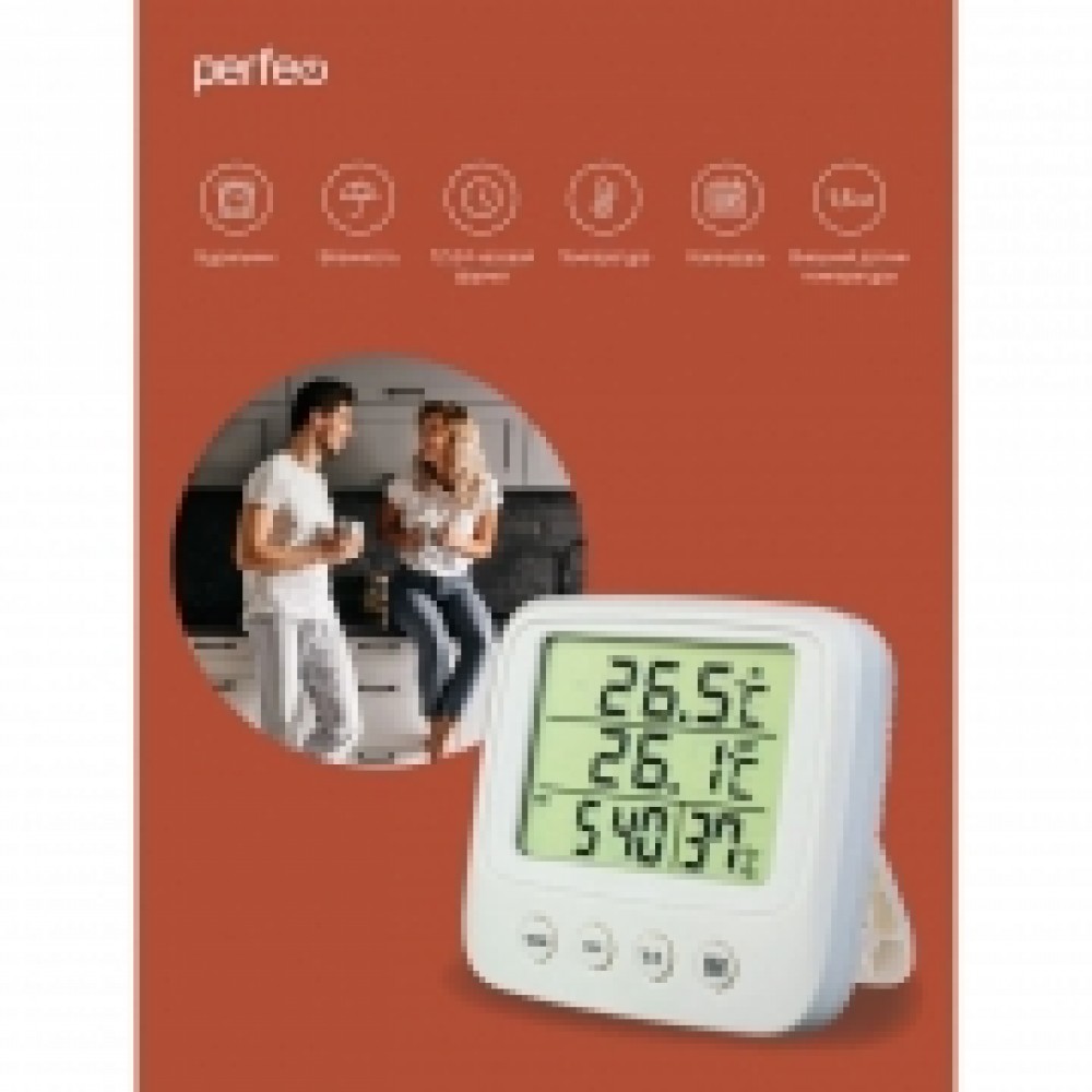 Метеостанция Perfeo PF-CX-0828A Apia с часами и будильником, белая (PF_C3666)