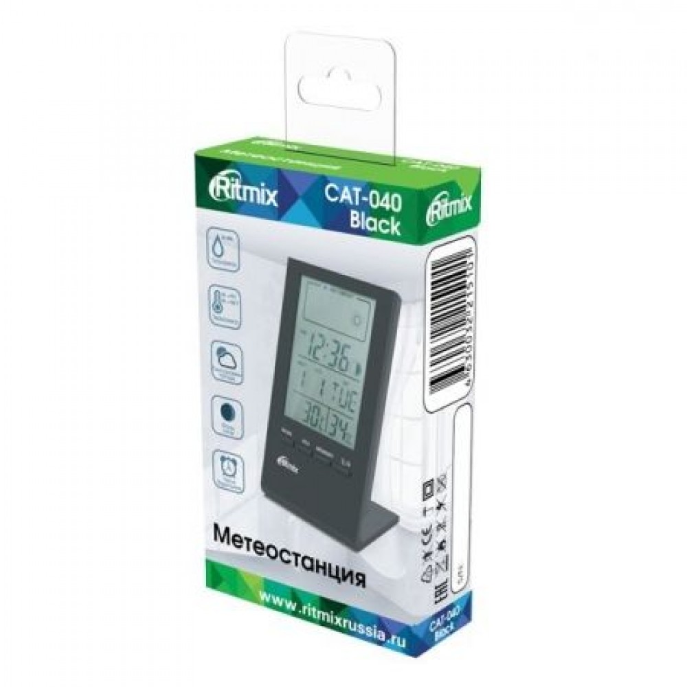 Метеостанция Ritmix CAT-040 с часами и будильником, черная