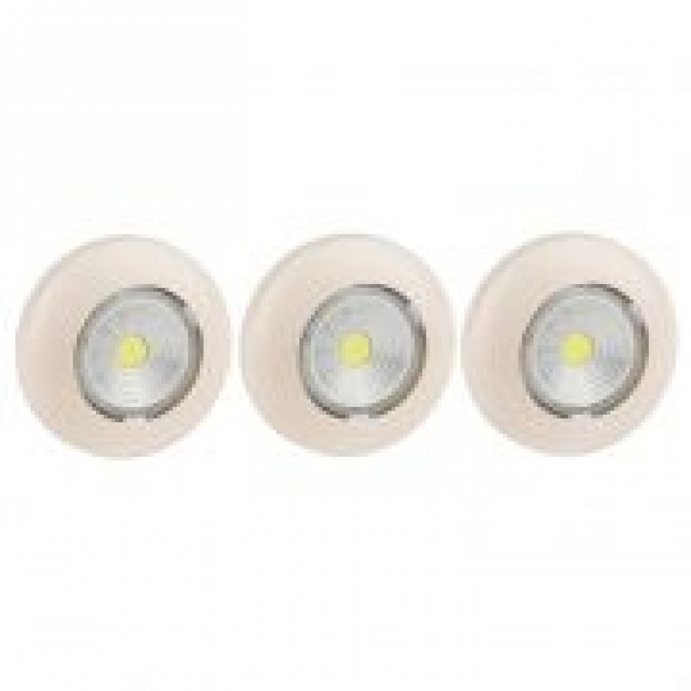 Комплект из трёх фонарей пушлайт Эра SB-505 идеально подойдет в качестве локальной подсветки в помещениях, шкафах и других затемненных местах. Каждый фонарь оснащен COB светодиодом, который отличается долговечной работой, имеет повышенную яркость и более широкий угол освещения. Для включения фонаря достаточно нажать на его отражатель. Фонарь легко устанавливается на любую гладкую поверхность с помощью самоклеющегося основания. Источником питания служат три батарейки типа AAA. Для замены элементов питания не требуется отклеивать фонарь.
